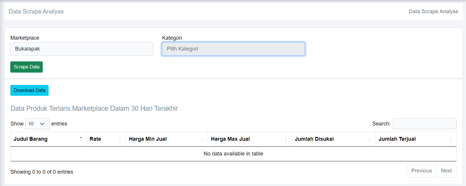 Jika sudah anda akan di bawa menuju halaman Data Scrape Analyse