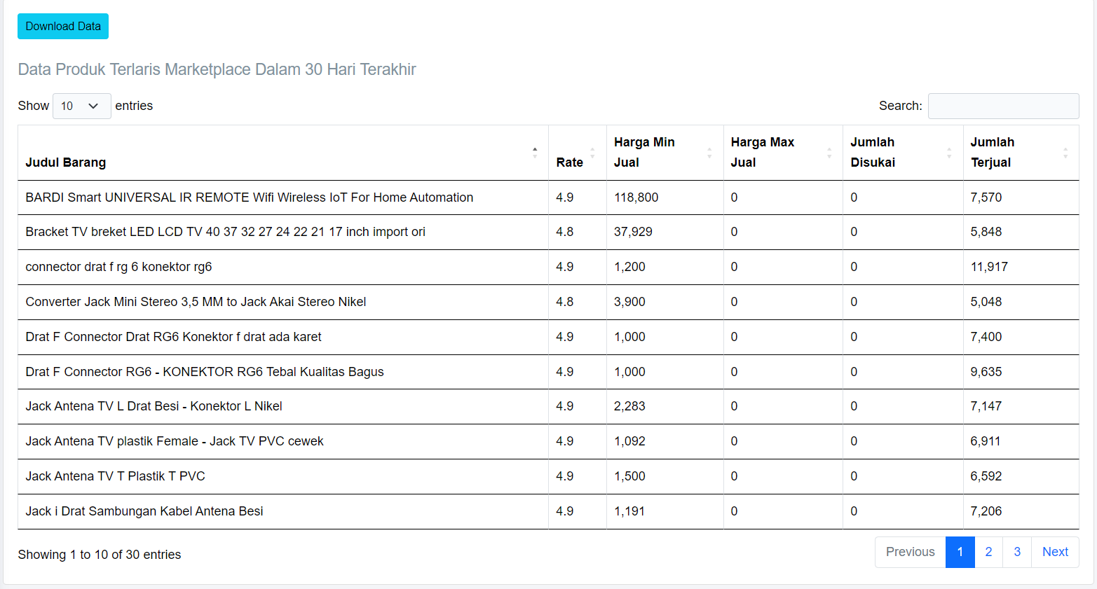 Setelah itu anda bisa pilih Marketplace mana yang ingin anda lihat data/produk terlariss nya di Marketplace