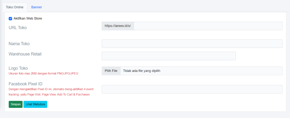 Jika ingin melihat toko online anda klik tombol Lihat Webstore