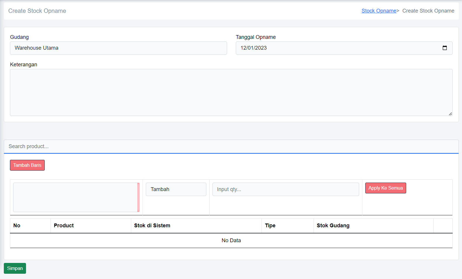 Klik tombol Tambah Opname Untuk melakukan Stock Opnam